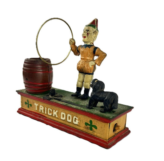Antique Style Trick Dog Cast Iron Mechanical Bank Reproduction β Mid Century